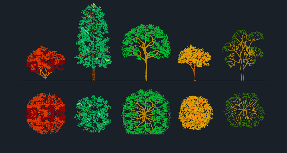 Enhance your architectural drawings with beautifully designed trees in AutoCAD, available in various colors to suit your style. You can use these trees to add a natural and organic touch to your plans and sections. In addition to the tree blocks, there is an extra file that includes various tree blocks in plan view, providing you with more options to choose from.
